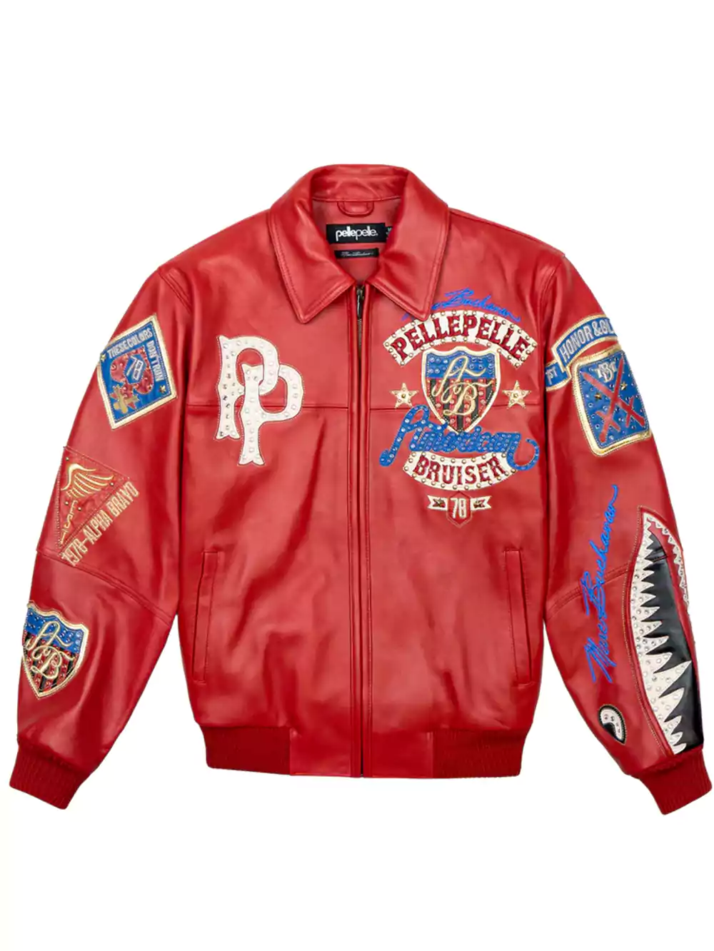 There’s something about red. It doesn’t whisper. It claims space. The American Bruiser Pelle Pelle Red Plush Leather Jacket arrives with that same fearless rhythm bold, unapologetic, alive.