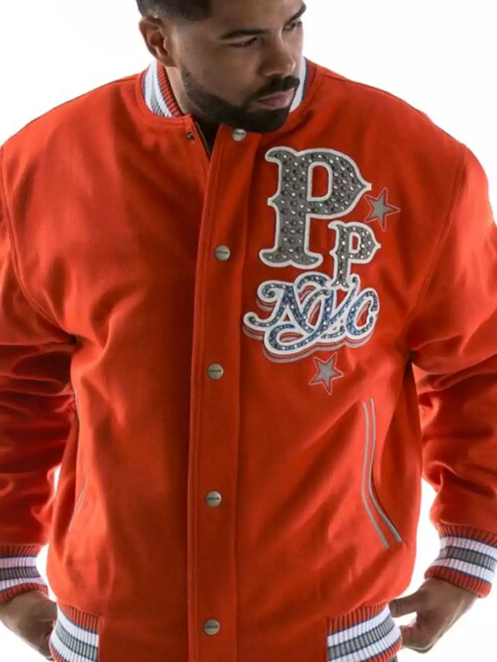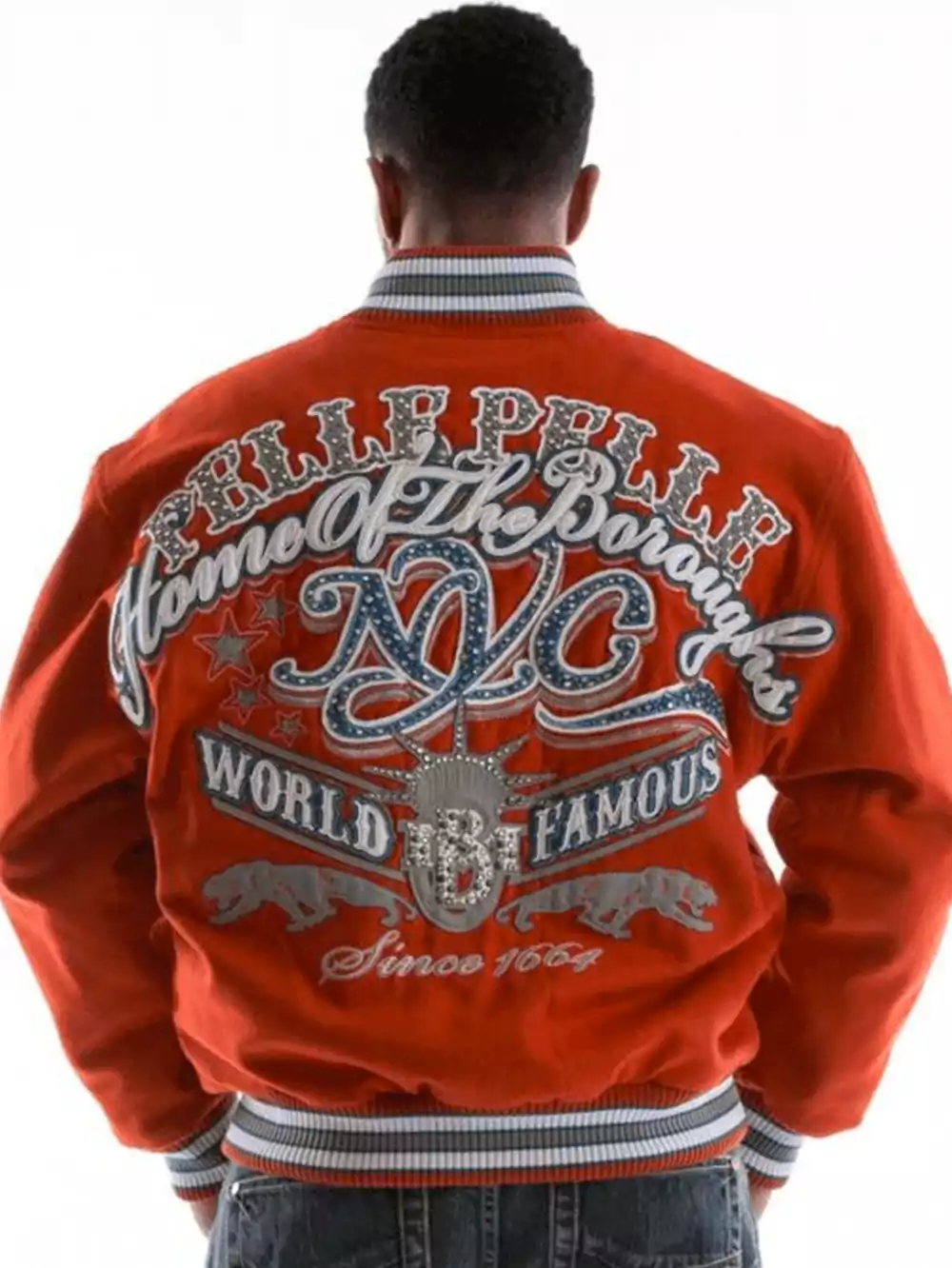 Pelle Pelle World Famous New York City Orange Varsity Wool Jacket