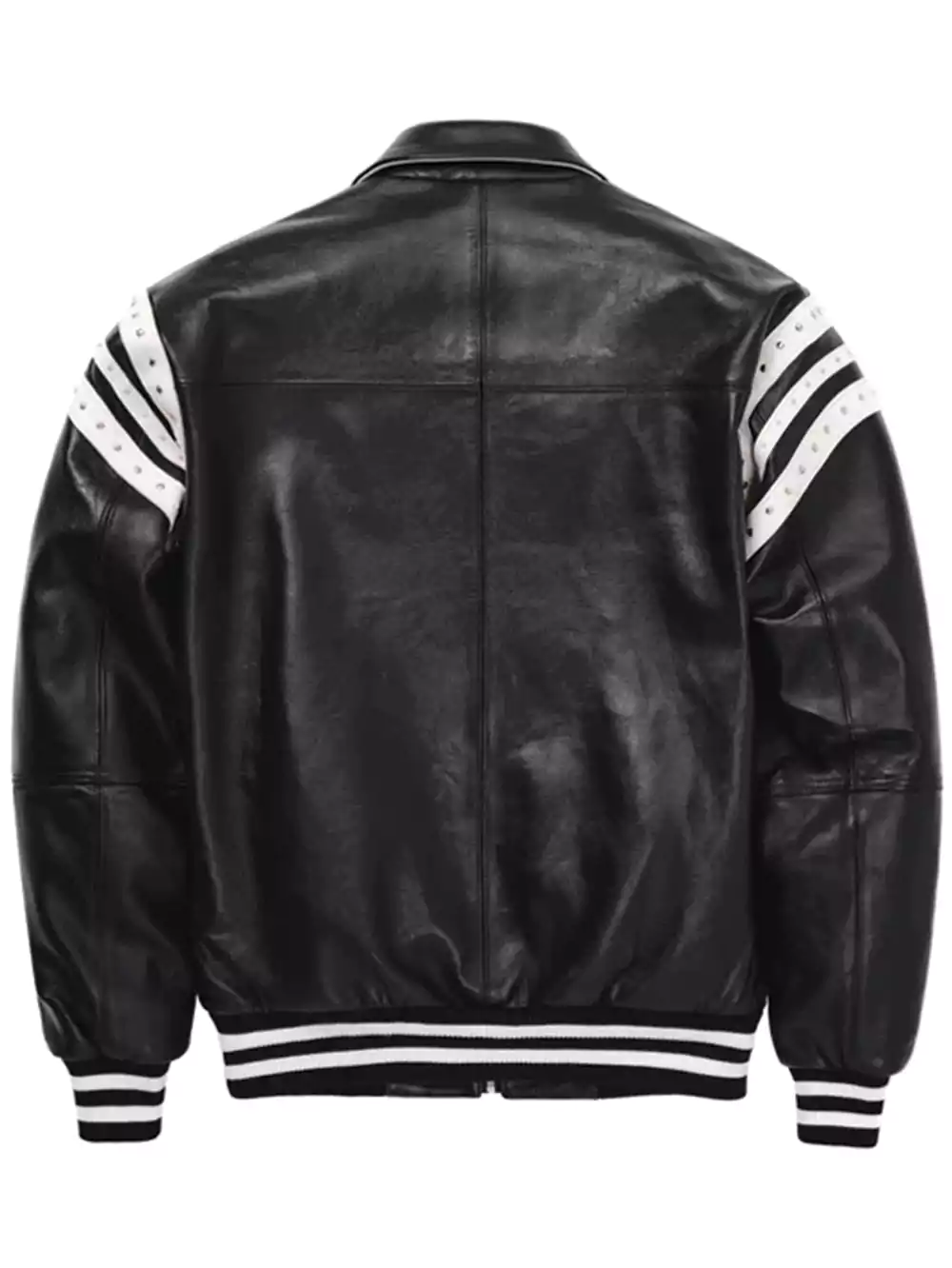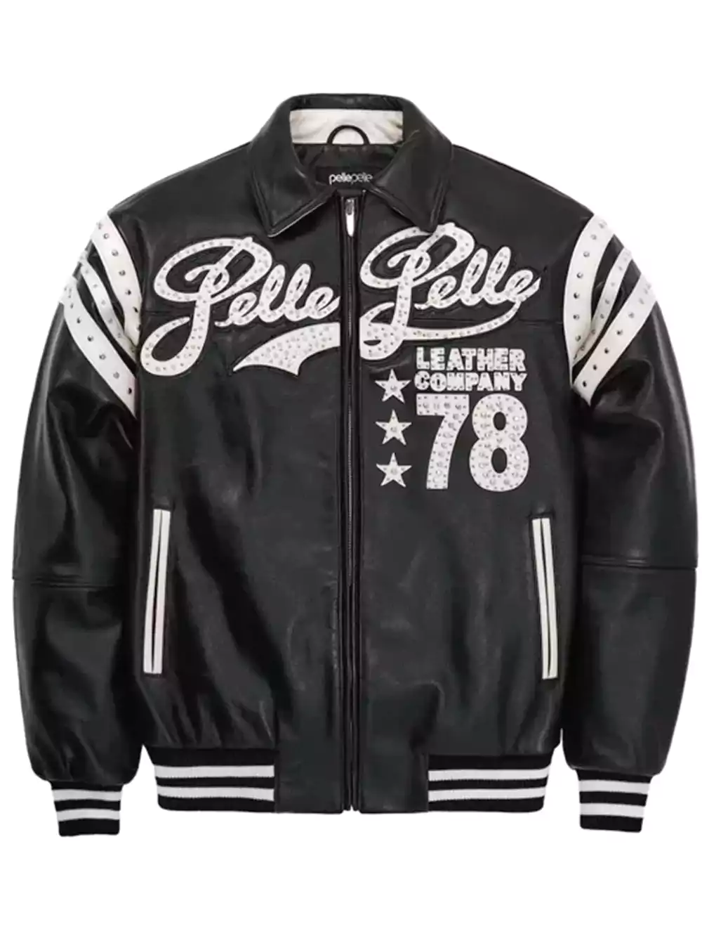 Encrusted Varsity Pelle Pelle Plush Black Men Leather Jacket