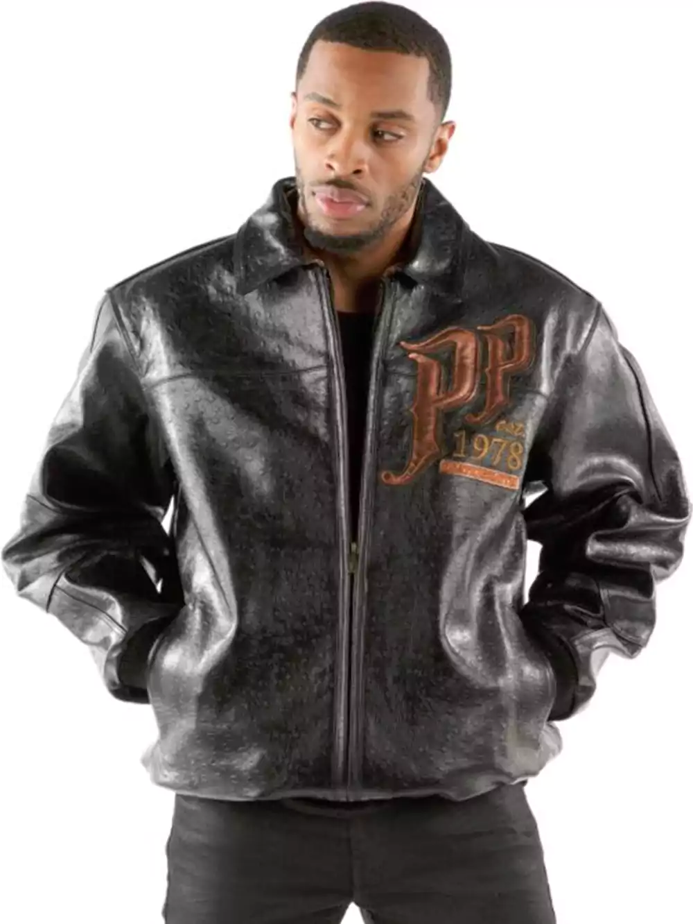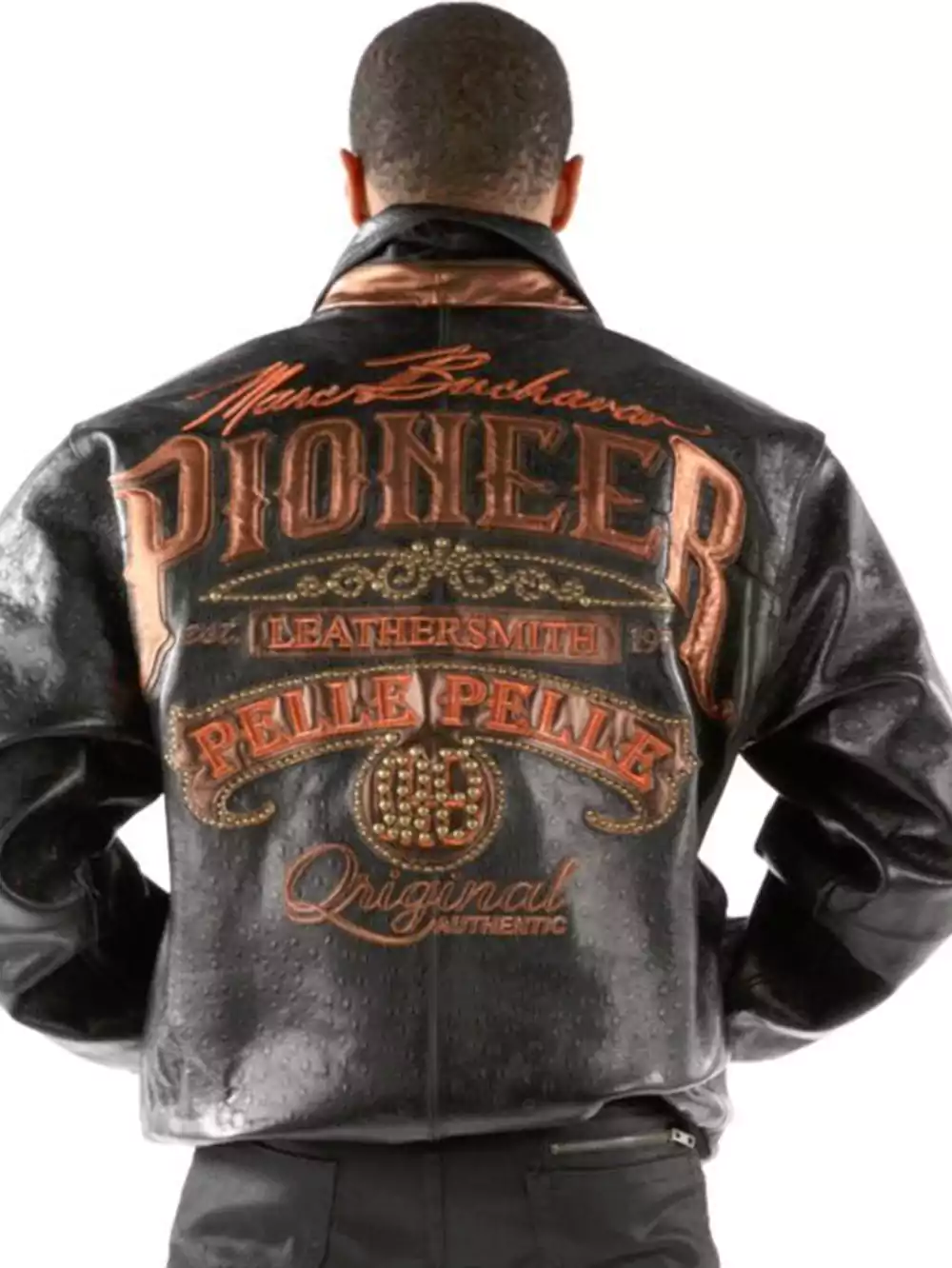 Black, bold, and unapologetic. The Pioneer Pelle Pelle Leathersmith MB Men Black Leather Jacket is crafted for streets that never sleep. Genuine leather contours every movement, viscose lining glides against skin, embroidered Pelle Pelle inside carries a whisper of legacy.