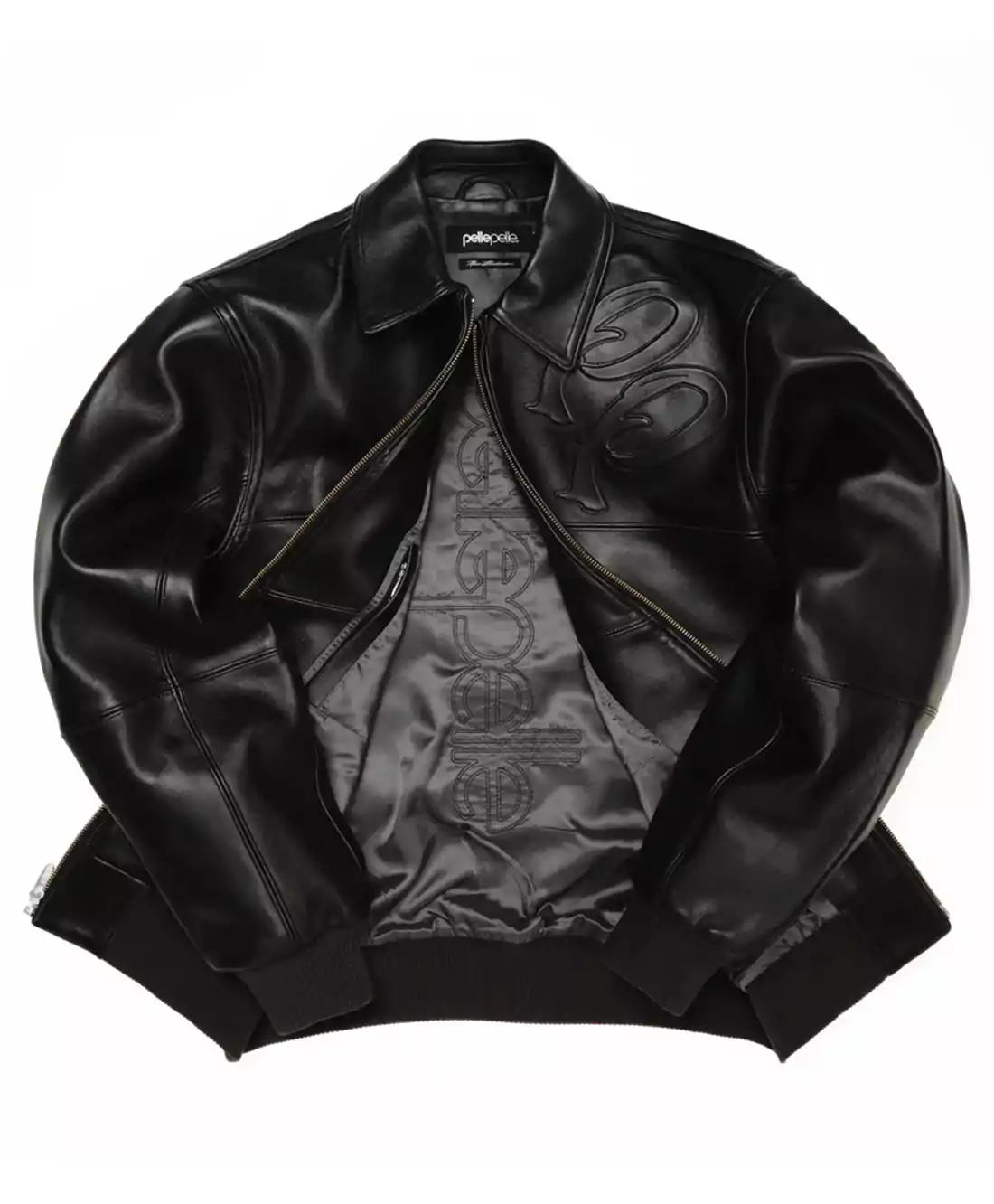 Inside, satin greets the skin with smooth familiarity, embroidered with the Pelle Pelle logo, like a signature hidden close to the heart. The branded zipper pulls up firm, locking you into a moment that feels unshakably bold. Rib-knit hems hold the silhouette tight, the kind of detail you don’t see until you’re living in it.
